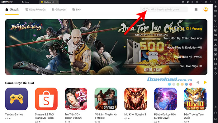Bước 4: Nếu đã cài đặt LDPlayer 9 trước đó, mọi người chỉ cần nhấn vào thanh tìm kiếm ở góc trên cùng bên phải.