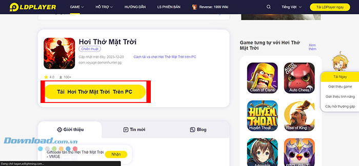 Bước 1: Truy cập liên kết Tải Hơi Thở Mặt Trời trên PC của LDPlayer.