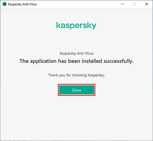 Bước 7: Bấm vào nút Done và phần mềm diệt virus Kaspersky Anti-Virus sẽ được cài đặt trên máy tính.