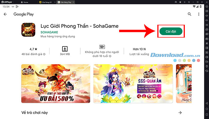 Bước 4: Trong giao diện tải game của Cửa hàng LD, nhấn nút Cài đặt.