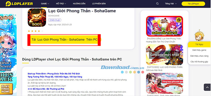 Bước 2: Nhấn vào Tải xuống Lục Giới Phong Thần - SohaGame và đợi file LDPlayer 9 tải thành công. Người chơi cần chấp nhận các điều khoản và điều kiện để tiến hành cài đặt game.