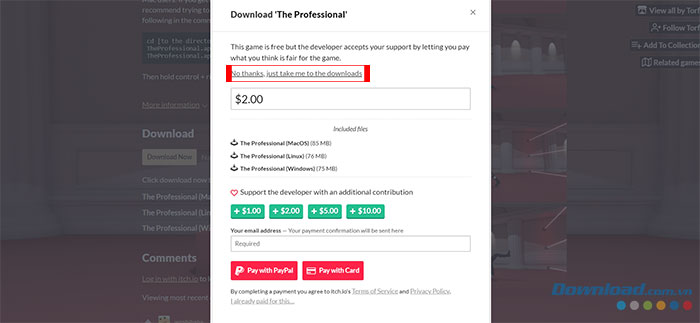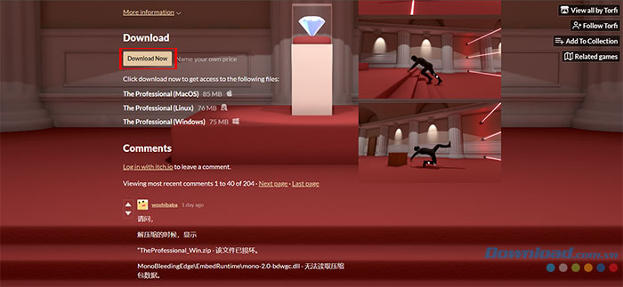 Bước 1: Truy cập trang web của The Professional trên itch.io. Sau đó, nhấn nút Download Now.