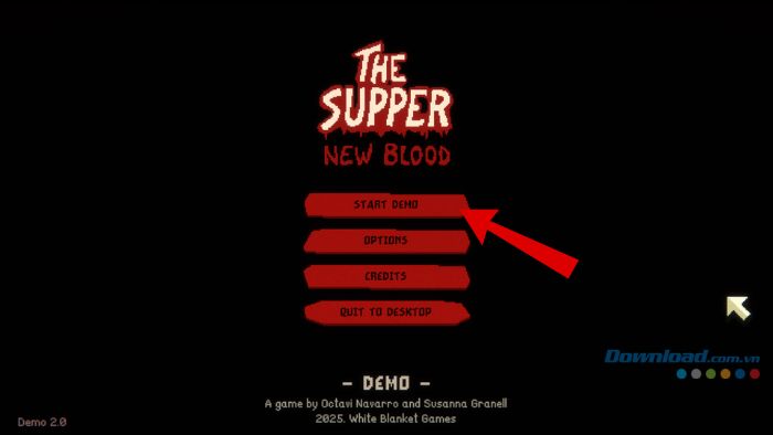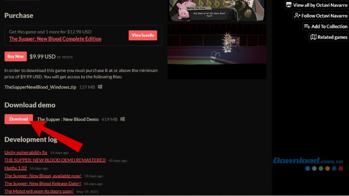 Bước 1: Truy cập trang web của The Supper: New Blood trên itch.io: https://octavinavarro.itch.io/the-supper-new-blood. Sau đó, nhấn nút Download tại phần Download Demo.