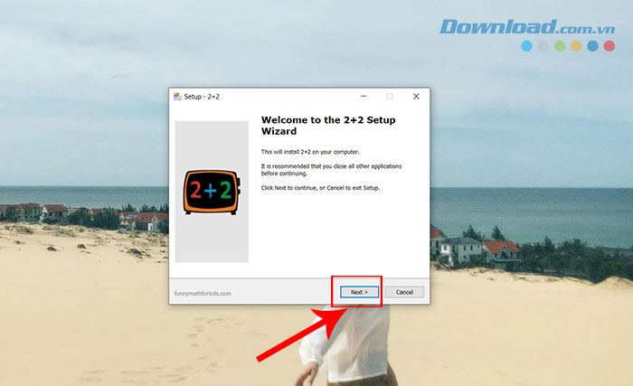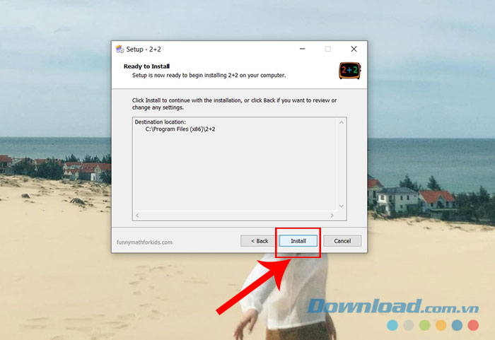 Bước 6: Tại cửa sổ cài đặt, nhấn nút Install để bắt đầu quá trình cài phần mềm 2+2 Math for Kids vào máy tính.