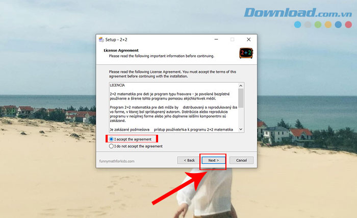 Bước 4: Chấp nhận điều kiện và điều khoản của phần mềm bằng cách tích vào I accept the agreement. Sau đó nhấn Next để tiếp tục.