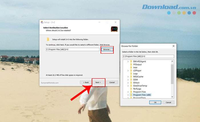 Bước 5: Chọn nơi lưu trữ file cài đặt của 2+2 Math for Kids bằng cách nhấn Browse. Tiếp tục chọn Next.