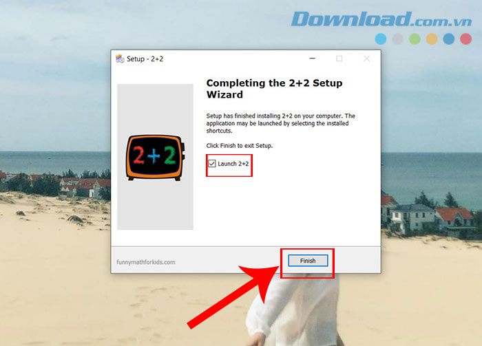 Bước 7: Sau khi hoàn tất tải xuống và cài đặt 2+2 Math for Kids vào PC, chọn Launch 2+2 và nhấn nút Finish để bắt đầu khởi chạy phần mềm.