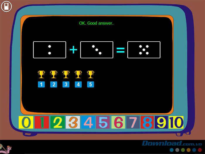 Sau đó chọn mô hình bài học, trò chơi nhưng đếm dấu chấm, điền ký tự phép tính còn thiếu, điền đáp án,...
