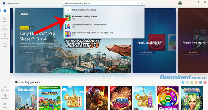 Bước 1: Truy cập trang tải Kids Science Learning Games hoặc mở Microsoft Store và tìm kiếm Kids Science Learning Games.