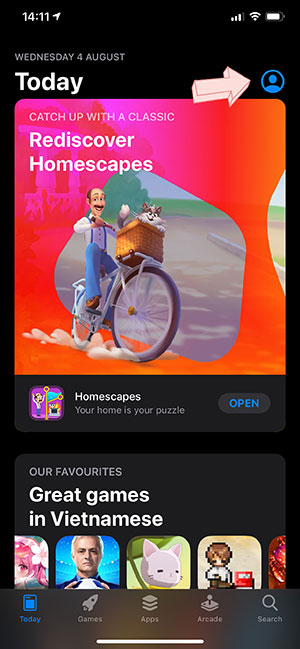 Bước 1: Chọn biểu tượng tài khoản ở góc trên bên phải màn hình.