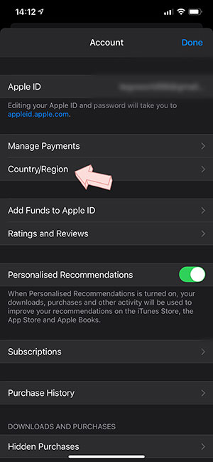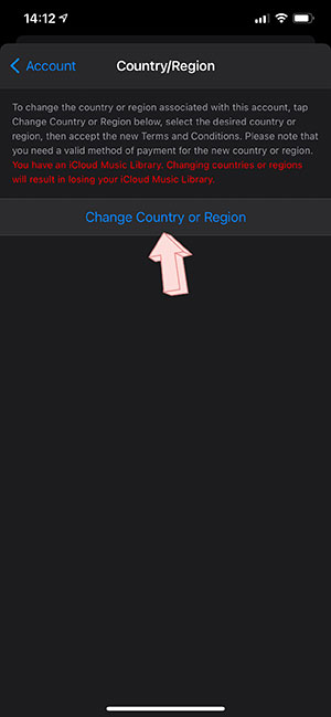 Bước 4: Chọn Thay Đổi Quốc Gia hoặc Vùng (Change Country or Region).