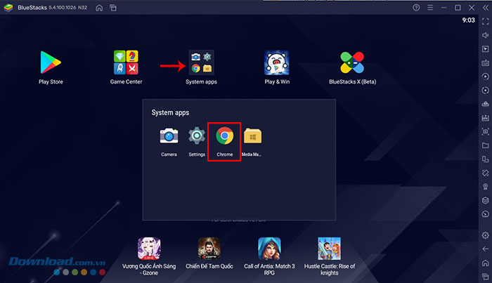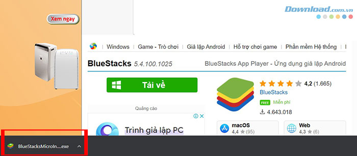 Bước 1: Nhấn vào ô tải về dưới đây để tải về BlueStacks trên máy tính.