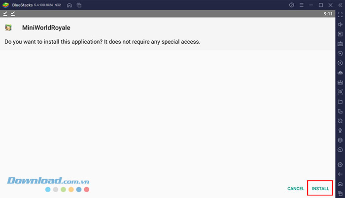 Bước 10: Chọn Install > Open để cài đặt Mini World Royale vào Bluestacks.