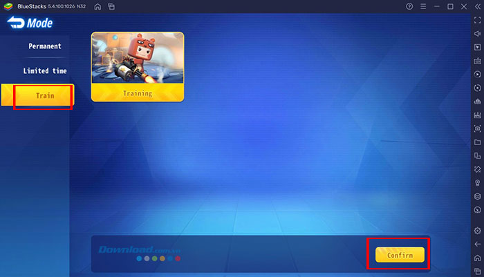 Bước 4: Nếu muốn làm quen với trò chơi, mọi người có thể nhấn vào Survival > chọn tab Train > Training > Confirm. Người chơi cũng có thể lựa chọn các chế độ khác như Survival, GunFight hoặc Haze Hunt để vào trận đấu 5v5.