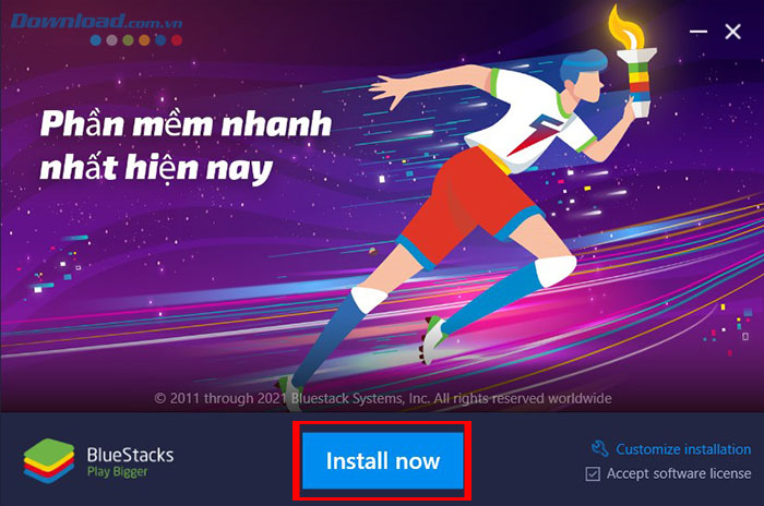 Bước 3: Tiếp tục chọn Install Now để tiến hành cài đặt BlueStacks.