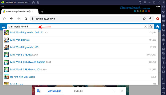 Bước 6: Nhập Mini World Royale vào thanh tìm kiếm hoặc nhấn vào ô tải về dưới đây.