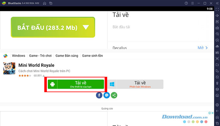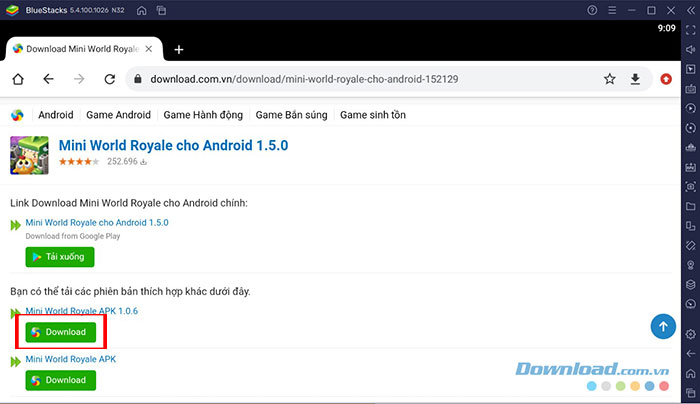 Bước 7: Nhấn chọn tải Mini World Royale cho Android.