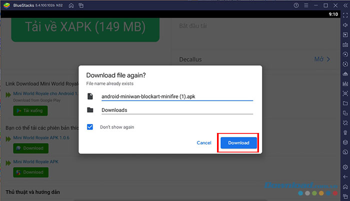 Bước 9: Khi cửa sổ thông báo xuất hiện, chọn Download để xác nhận tải file.