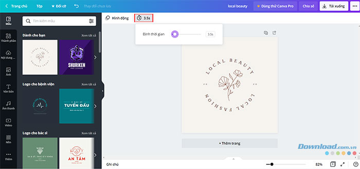 Mọi người có thể chọn bất kỳ mẫu có sẵn với các chủ đề khác nhau trong mục Mẫu và thay đổi lại nội dung với Văn bản, cùng các chi tiết khác với tab Thành phần.