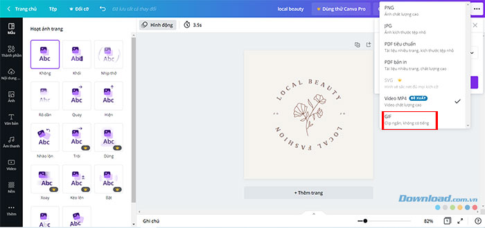 Đây là bước quan trọng, quyết định định dạng đúng cho thiết kế mọi người vừa tạo. Khi đã hài lòng với hình ảnh động mình tạo, hãy nhấp vào nút Tải xuống để xem các định dạng có sẵn.