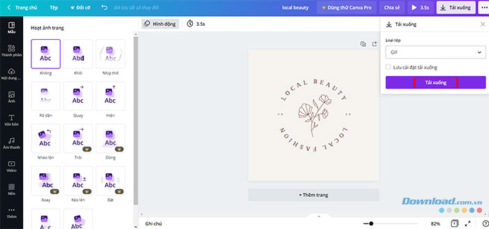 Sau đó, nhấp vào Tải xuống và ảnh động sẽ được lưu vào thiết bị.