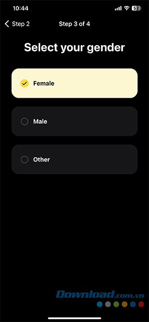 Bước 6: Lựa chọn giới tính của mình: Female (nữ), Male (nam), Other (khác).