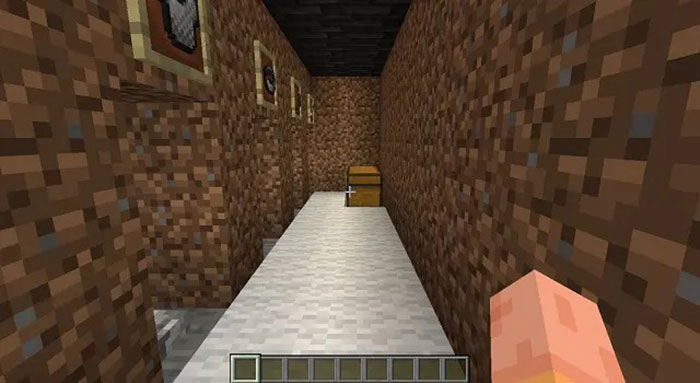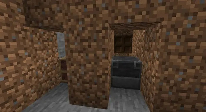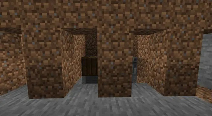 Sau đó, tạo một lỗ hổng cao 2 khối bằng cách phá vỡ các khối trong đường hầm về phía tất cả các phòng của dân làng.