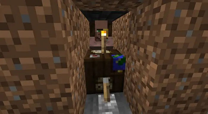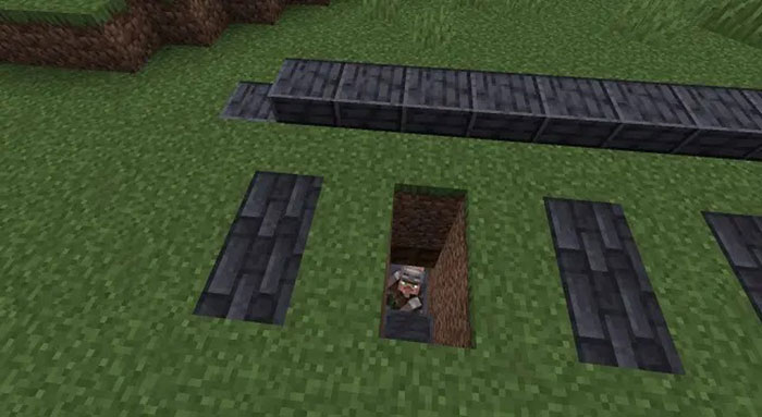 Nếu không có khối công trường nào khác gần đó, dân làng sẽ sẵn sàng nhảy vào hố cùng với 1 khối Job Site. Khi dân làng ở trong hố, hãy đảm bảo tạo một mái nhà bằng các tấm Deepslate Slab (hoặc bất kỳ khối rắn nào).