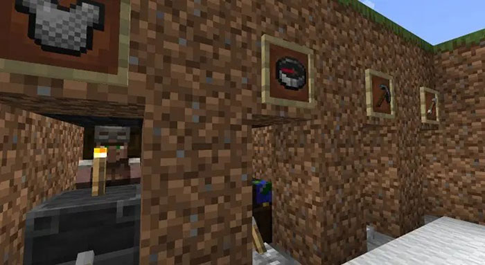 Sau đó, đặt một khung vật phẩm lên trên lối vào của mỗi buồng và đặt một vật phẩm liên quan đến công việc của dân làng. Điều này sẽ giúp dễ dàng để xác định chúng. Người chơi cũng có thể tận dụng khoảng thời gian này để trải thảm sàn nhằm tăng vẻ đẹp thẩm mỹ.