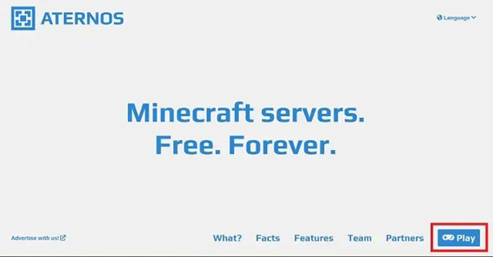 Bước 1: Để bắt đầu, hãy mở trang web chính thức của Aternos và nhấp vào nút Play ở góc dưới cùng bên phải.