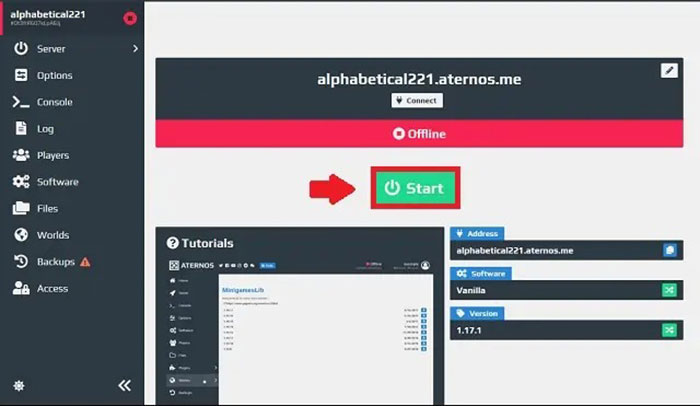 Bước 3: Máy chủ hiện đã sẵn sàng để sử dụng, nhấp vào nút Start để khởi động máy chủ, nhưng chưa bắt đầu chơi trên đó.