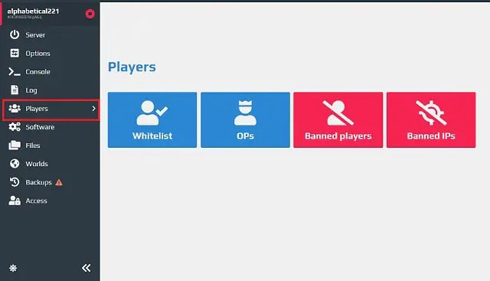Sau đó, chuyển đến phần Players và liệt kê những tên người dùng muốn cấm hoặc đưa vào danh sách trắng trong máy chủ của mình. Tính năng này có thể hữu ích sau này, đặc biệt là khi nhiều người chơi tham gia máy chủ.