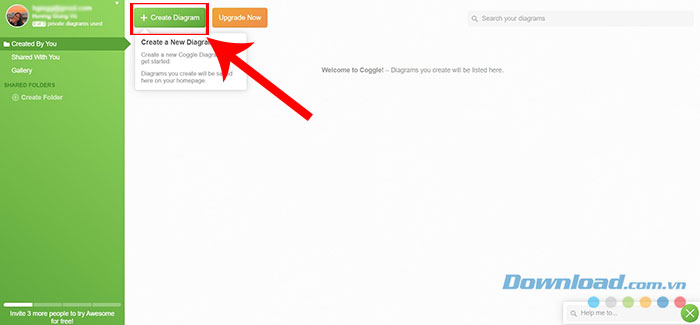 Bước 2: Nhấn vào Create Diagram để tạo một sơ đồ tư duy mới.