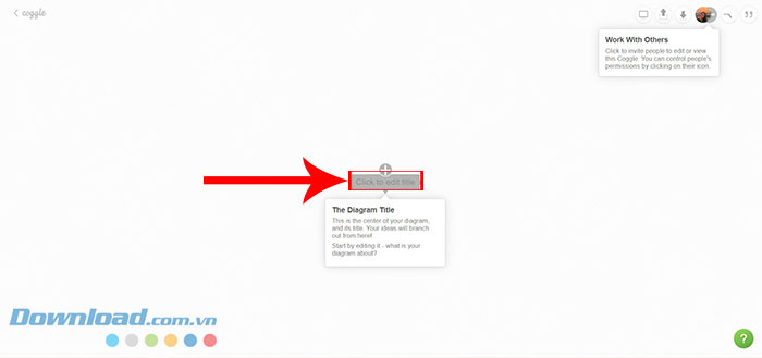 Bấm vào mục trung tâm Click to edit title để nhập chủ đề, tiêu đề của sơ đồ tư duy, các thay đổi sẽ tự động được lưu lại.