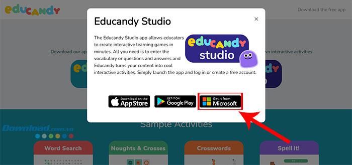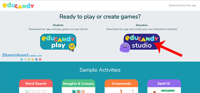Bước 3: Chọn Educandy Studio dành cho giáo viên để tạo trò chơi.