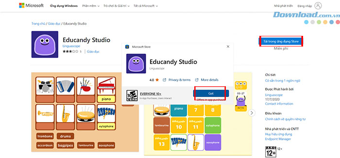 Bước 5: Nhấn nút Tải trong ứng dụng Store và bấm vào Get.