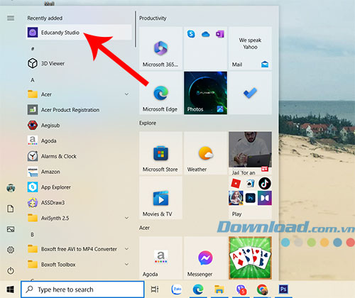 Bước 6: Sau khi ứng dụng hoàn tất tải xuống, nhấn phím Windows để mở menu Start và truy cập Educandy Studio.