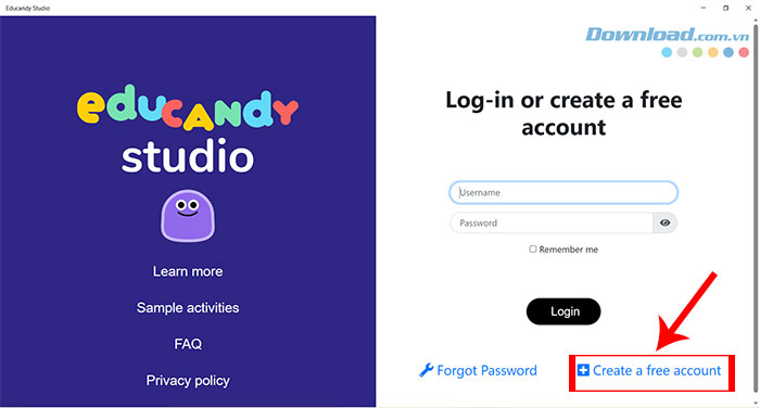 Bước 7: Để tạo tài khoản, chọn Create a free account.