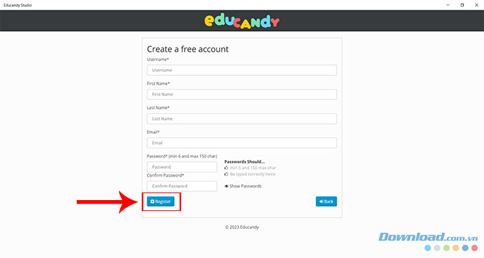 Bước 8: Hoàn thiện thông tin được yêu cầu và nhấn nút Register.