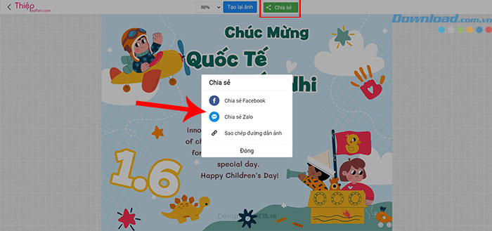 Bước 4: Đặt tên cho file ảnh và nhấn nút Save (nếu có). Bây giờ mọi người cũng có thể nhanh chóng gửi thiệp chúc mừng cho trẻ bằng cách nhấn vào Chia sẻ để chia sẻ qua mạng xã hội như Facebook và Zalo hoặc bất kỳ ứng dụng nhắn tin nào.