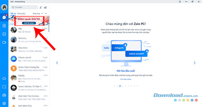 Bước 1: Truy cập Zalo trên máy tính, nhấn vào Gửi lời chúc trong banner Món quà 20/10.