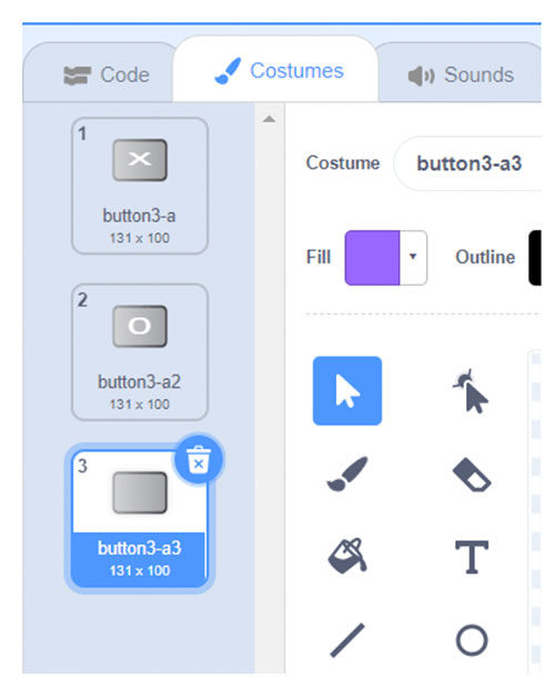 Có ba hàng và ba cột tạo nên tổng cộng 9 ô có thể đặt X và O. Hãy bắt đầu với một Sprite: Button. Tạo thêm hai phiên bản nữa: Một cho X và một cho O. Phiên bản thứ ba sẽ được sử dụng để đại diện cho một ô trống, cụ thể như sau: