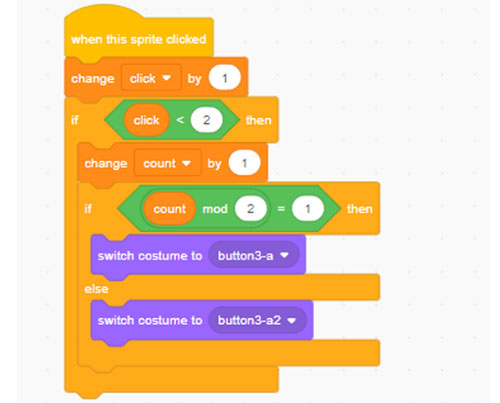 Tiếp theo, hãy tạo một biến để theo dõi lượt chơi. Vì trò chơi luôn bắt đầu bằng chữ X, mọi người sẽ sử dụng khối mod để hiển thị ô có X nếu số lần nhấp là số lẻ, nếu không ô có O sẽ hiển thị: