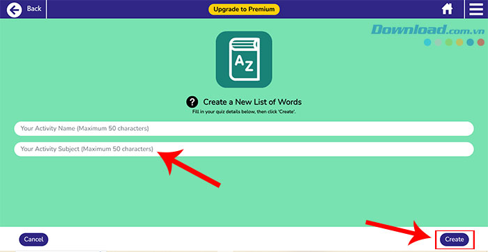 Bước 3: Nhập tên và mô tả cho Activity. Sau đó, nhấn nút Create.