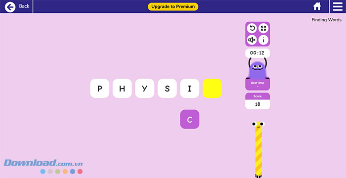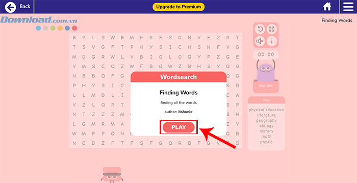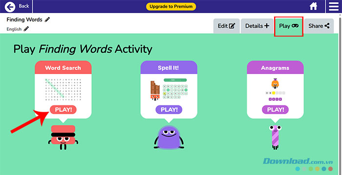 Bước 6: Để xem các trò chơi được tạo ra, nhấn vào tab Play và chọn một trò chơi để xem cách trò chơi hoạt động. Các trò chơi tạo ra từ Words bao gồm Word Search (tìm từ), Spell it (đánh vần) và Anagrams (sắp xếp chữ cái tạo thành từ có nghĩa).