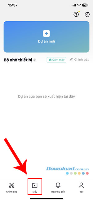 Bước 1: Mở ứng dụng CapCut và nhấn vào tab Mẫu.