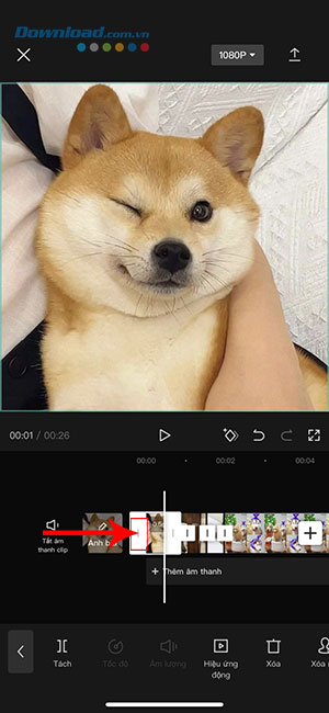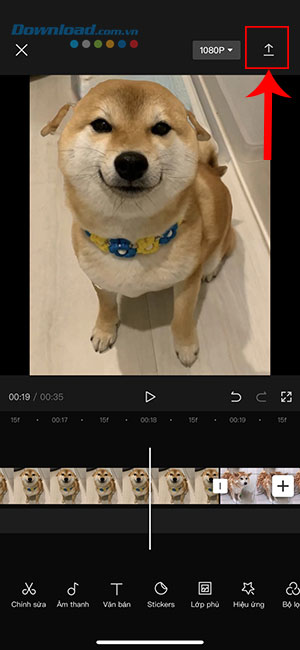 Khi hoàn tất quá trình tạo và chỉnh sửa video, hãy nhấp vào biểu tượng mũi tên ở góc trên cùng bên phải để video được xuất ra thư viện ảnh.