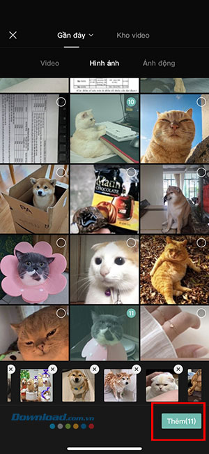 Chọn 11 hình ảnh và nhấn vào nút Thêm ở góc dưới cùng bên phải.