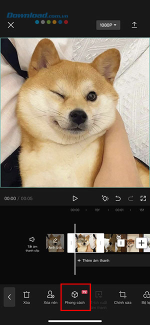 Tiếp theo, mọi người có thể dễ dàng thêm hiệu ứng Zoom trong thanh công cụ ở dưới cùng. Để làm điều đó, người dùng cần nhấp vào từng ảnh, vuốt sang để tìm tab Phong cách trên thanh công cụ.