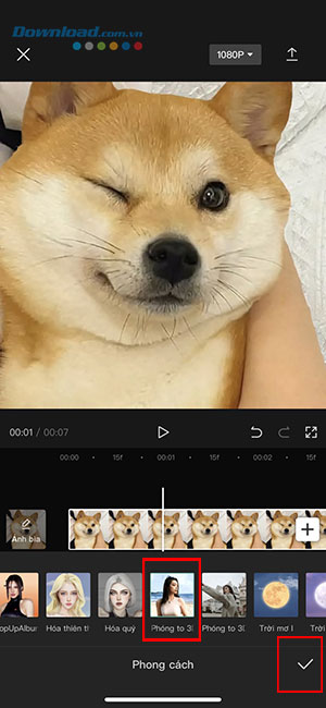 Cuối cùng, nhấn vào dấu tích ở góc dưới cùng bên phải để lưu thay đổi. Vậy là mọi người đã hoàn tất việc thêm hiệu ứng Zoom 3D bằng CapCut một cách đơn giản và nhanh chóng.